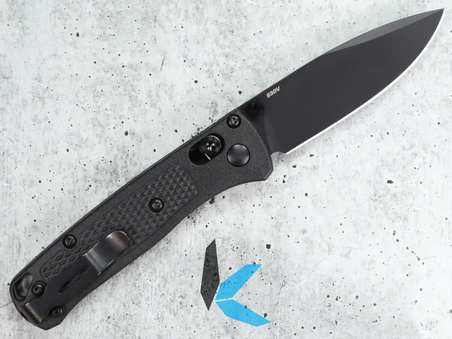 Broad dual thumb studs, combined with the Benchmade AXIS lock allow for fully ambidextrous opening and closing and easy one-handed operation. This Mini Bugout is constructed from premium CPM S30V steel with a black grivory nylon handle. The pocket clip can be arranged for right or left-hand tip-up carry.