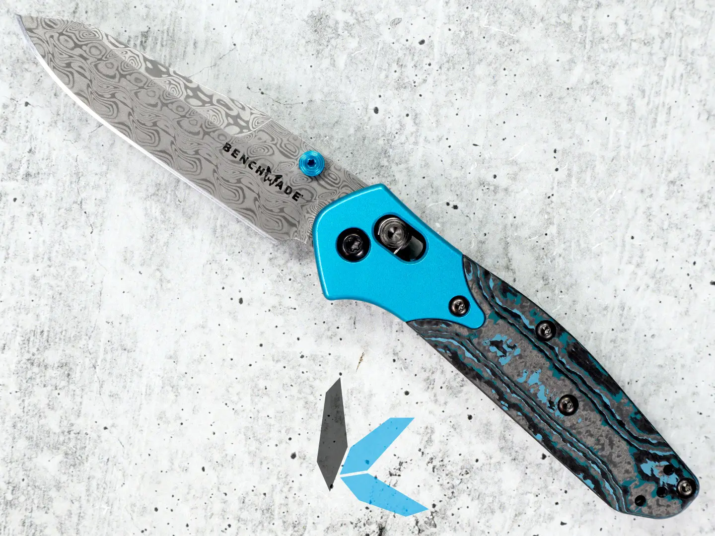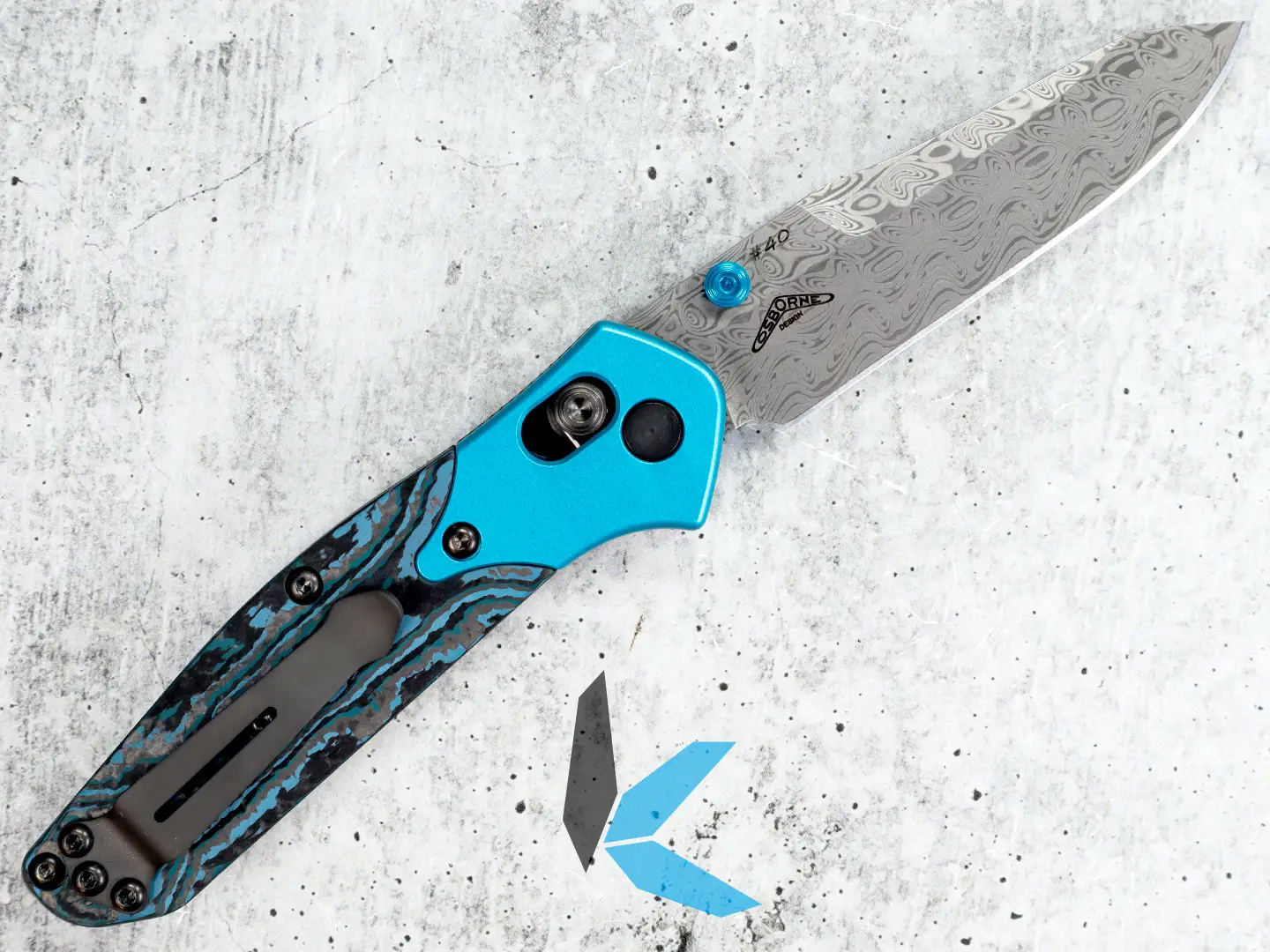 The Benchmade Mini Osborne is a smaller, compact version of the beloved and renowned full size Osborne. This gold class model features a reverse tanto blade constructed from damasteel with an aluminum and carbon fiber handle. The blade locks open via Benchmade’s patented AXIS lock mechanism, in which a spring loaded hardened steel bar locks against the ramped blade tang.