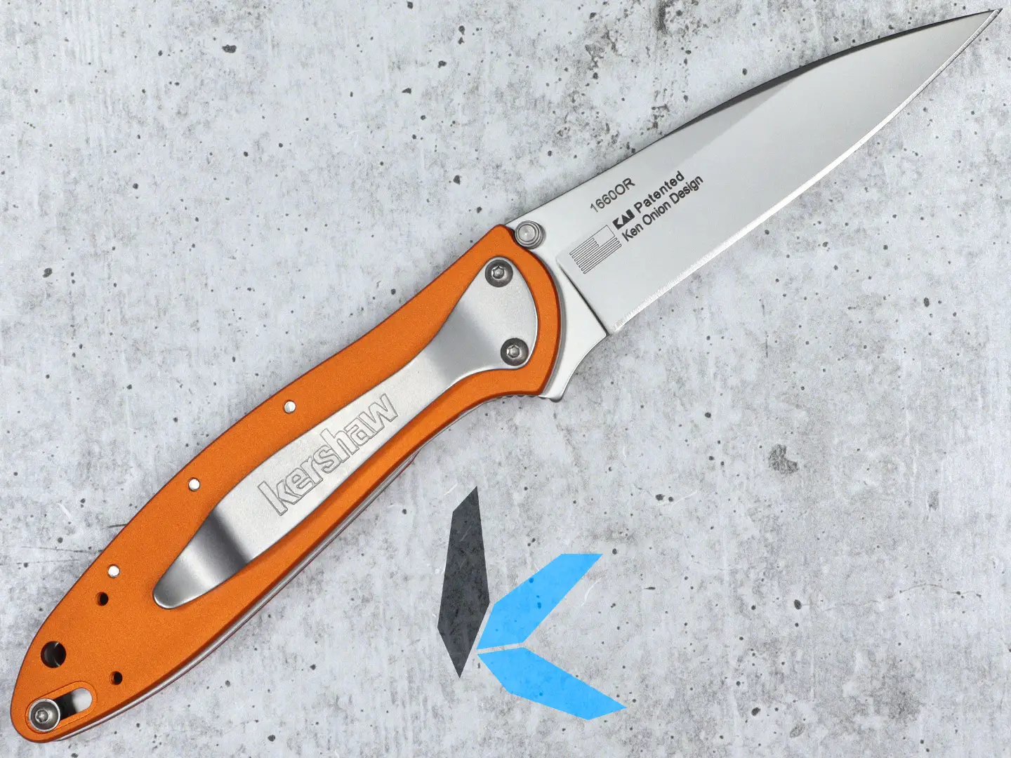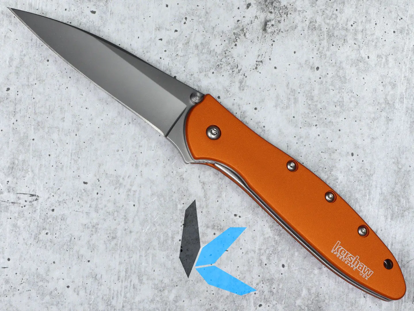 The brilliant orange of the anodized-aluminum handle is a fade-resistant, scratch-resistant dye that’s permanently bonded to the aluminum—so it looks good now, and will continue to look good later. The business end of the knife is a task-ready 3-inch blade of Sandvik 14C28N stainless steel, a steel designed in a partnership between Kershaw and Sandvik. This high-performance steel enables us to make the Leek’s blade razor sharp out of the box and helps it hold that edge, too. The modified drop-point blade shape makes it a good slicing knife, while the slim tip gives it excellent piercing and detail work capabilities.