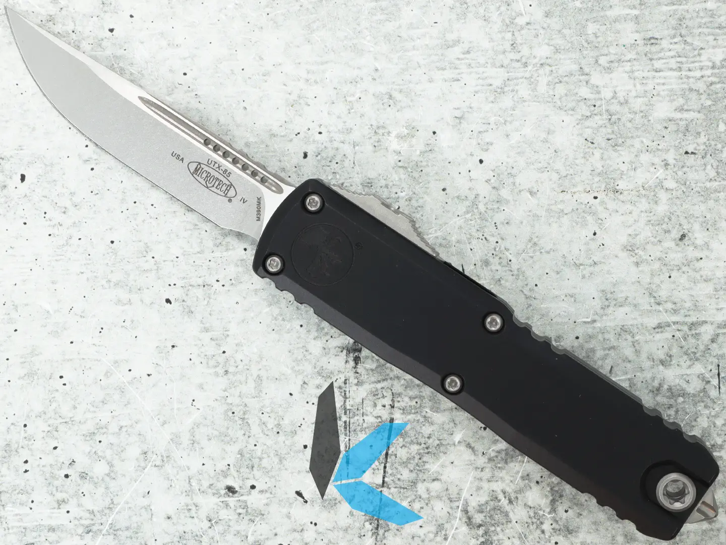 This Gen IV UTX-85 is equipped with Microtech’s latest drivetrain and Crud Kutter system, providing smoother action and improved resistance to debris buildup. The black anodized 6061-T6 aluminum handle features the Microtech Claw logo, paired with a stonewashed M390MK stainless steel single-edge blade. Bead-blasted hardware, pocket clip, and glass breaker complete the package, making this a refined and dependable OTF for everyday carry.