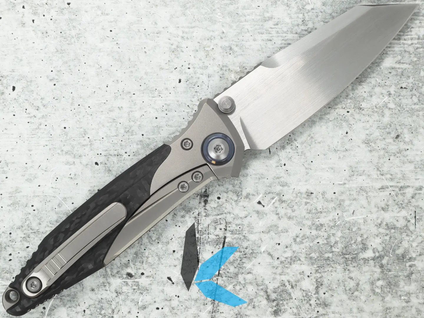 The handle pairs carbon fiber scales with a machined titanium frame, balancing lightweight carry with serious durability. The ergonomic shape locks into your hand, and a tip-up pocket clip keeps it secure and discreet until called into action.