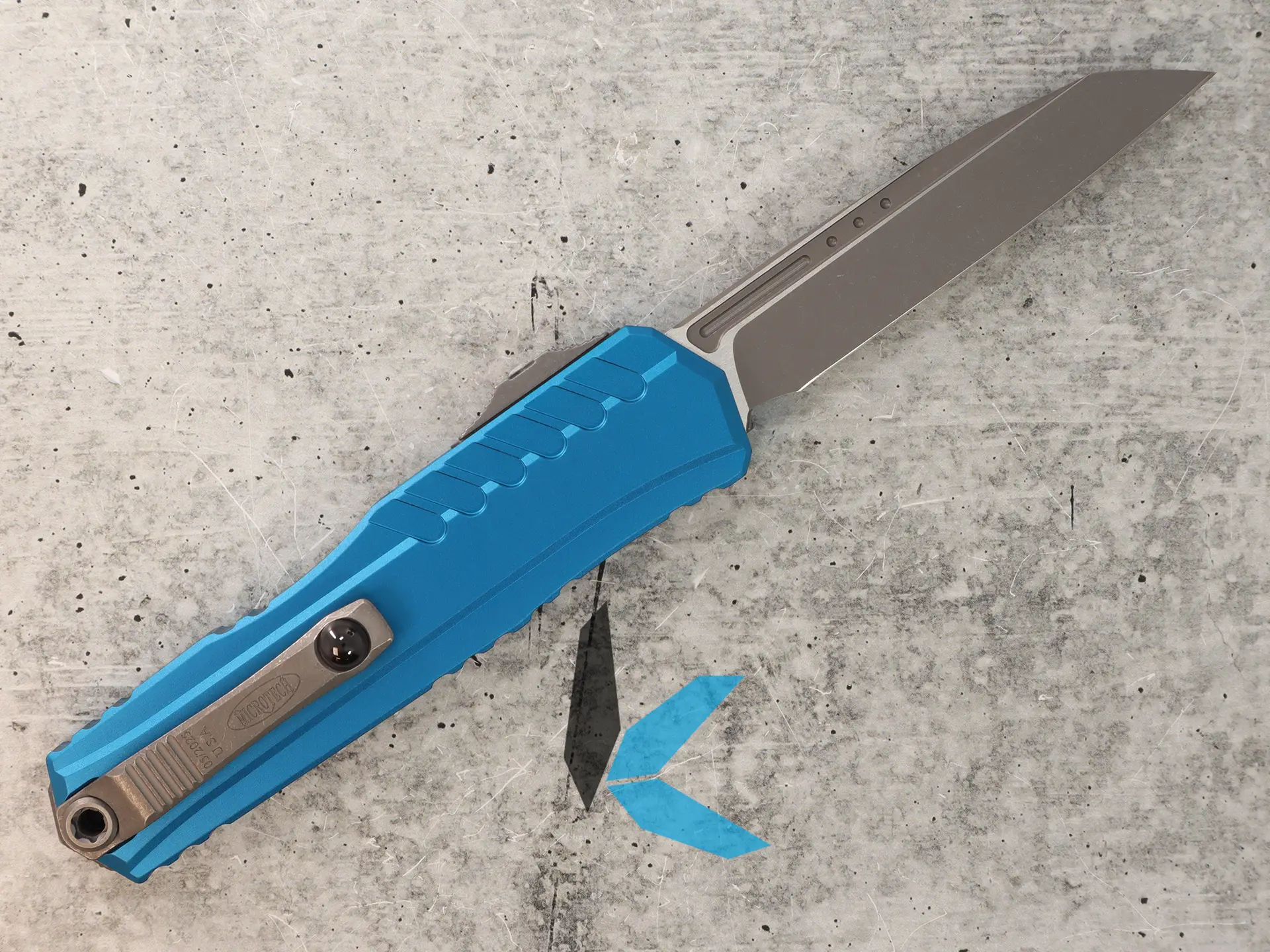 Microtech Auto Cypher II – Apocalyptic Single Edge OTF | Blue Aluminum