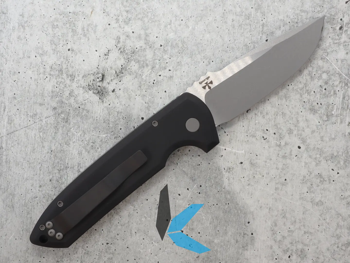 Protech LG305 Rockeye auto, black handle w/ knurling, stonewash CPM-S35VN plain edge blade.