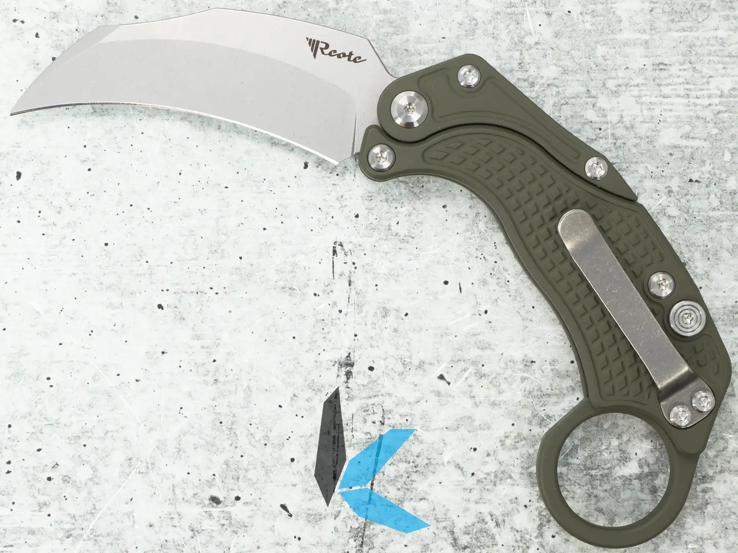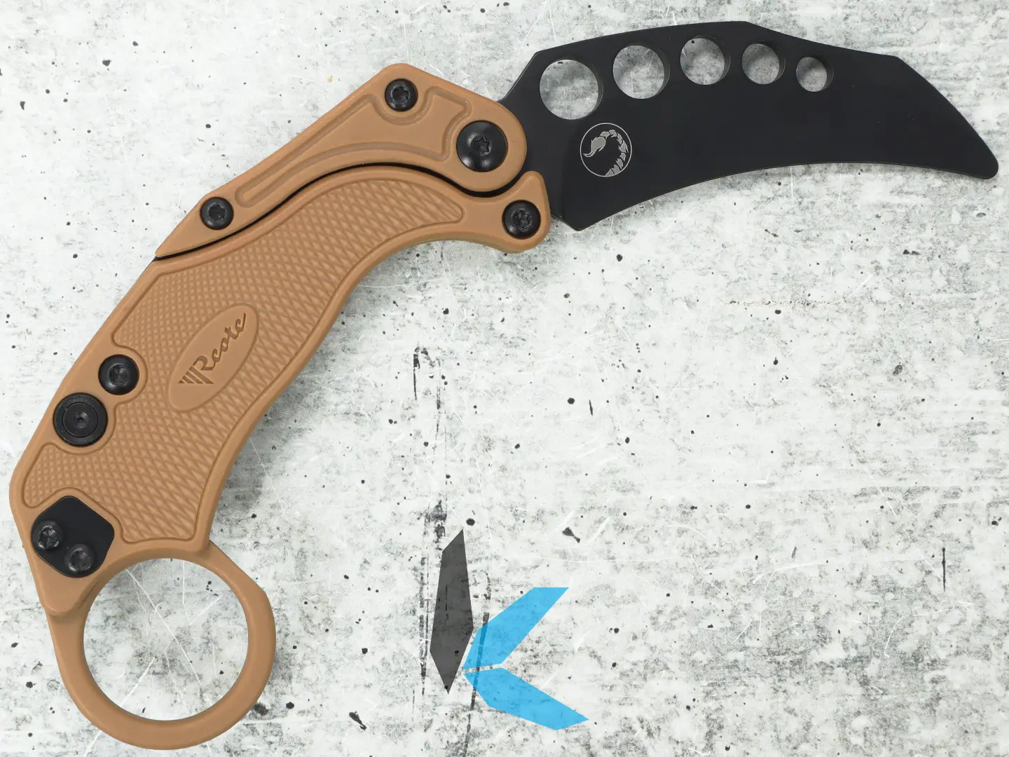 Reate includes a blue trainer blade so you can practice safely before running the real thing. The removable finger ring allows you to set up the knife exactly how you prefer, and the reversible pocket clip ensures easy carry on either side. Built with rugged aluminum scales and a Bohler N690 blade, the EXO-K delivers Reate’s premium fit and finish at a more accessible price point.