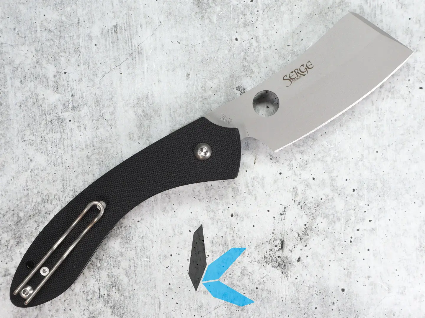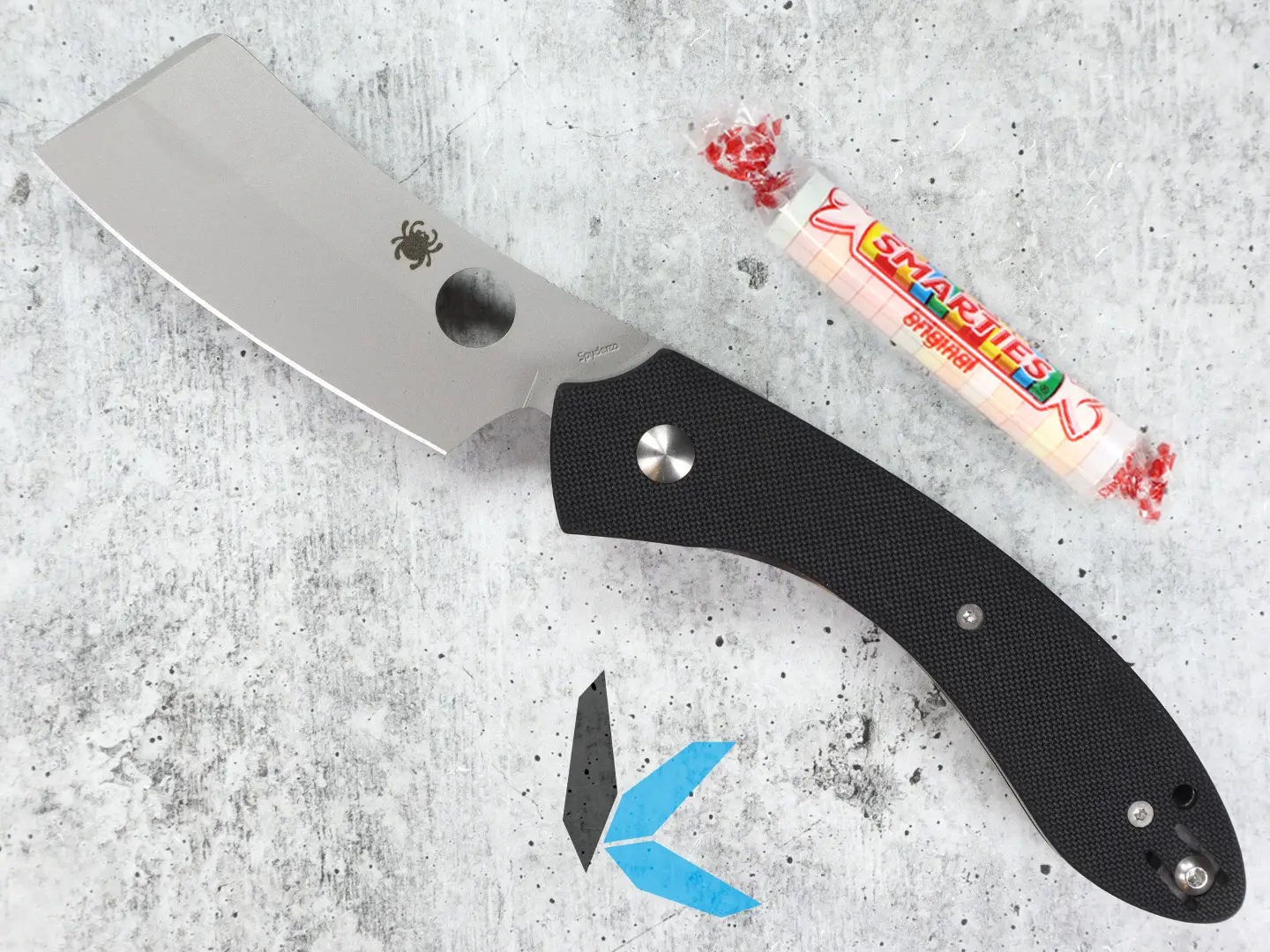 This Spyderco Roc features a cleaver-style VG-10 bead blasted blade, and black G-10 scales with a liner lock and right or left-hand wire carry clip.