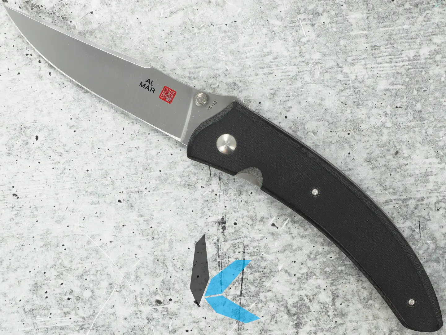 A smaller companion to Al Mar’s storied SERE 2000 and Nomad folders, the Shrike delivers the same rugged pillar-and-tube construction, heavy-duty flow-through design, and rock-solid liner lock. Designed by Kirk Rexroat, its comfortable ergonomic handle flows seamlessly into a 3 5/8″ VG-10 stainless steel trailing-point blade with a flat grind. Dual thumb studs and a sleek black stainless-steel pocket clip round out this versatile EDC tactical folder—hand-finished in Japan and ready to work as hard as you do.