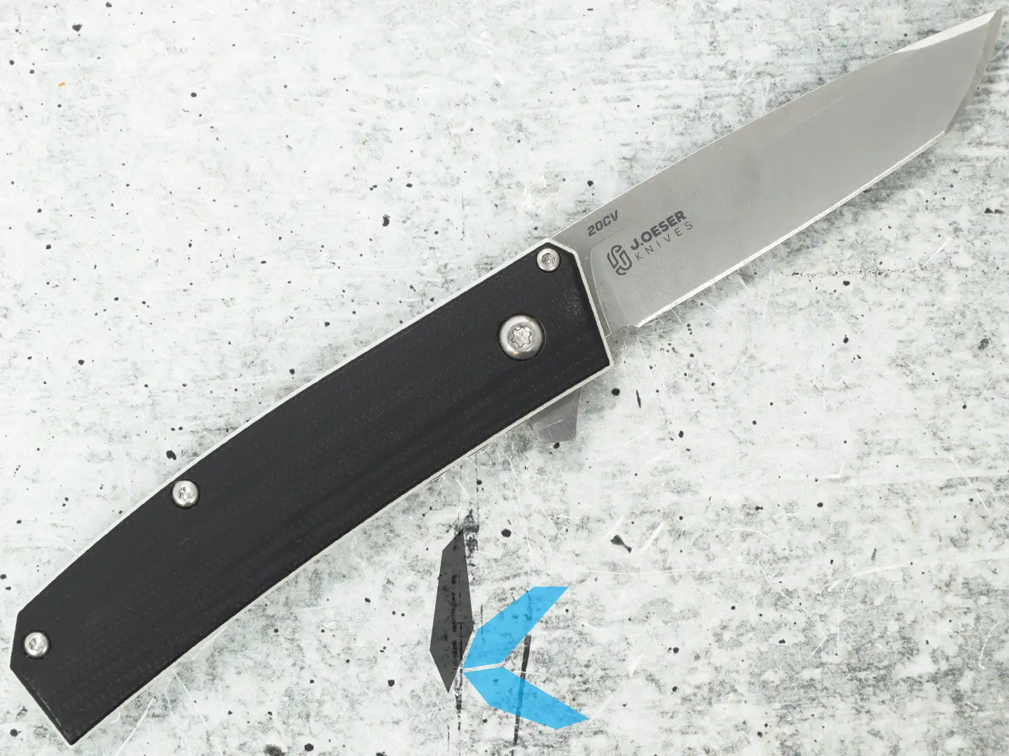 The Tengu features a CPM-20CV stainless steel tanto blade with a satin finish, delivering excellent edge retention and corrosion resistance. Its dual-layer G10 handle, combining black contoured scales over a white base with a polished shield inlay, provides a striking and comfortable grip. Smooth flipper action and a reliable liner lock mechanism round out this classy, functional design.
