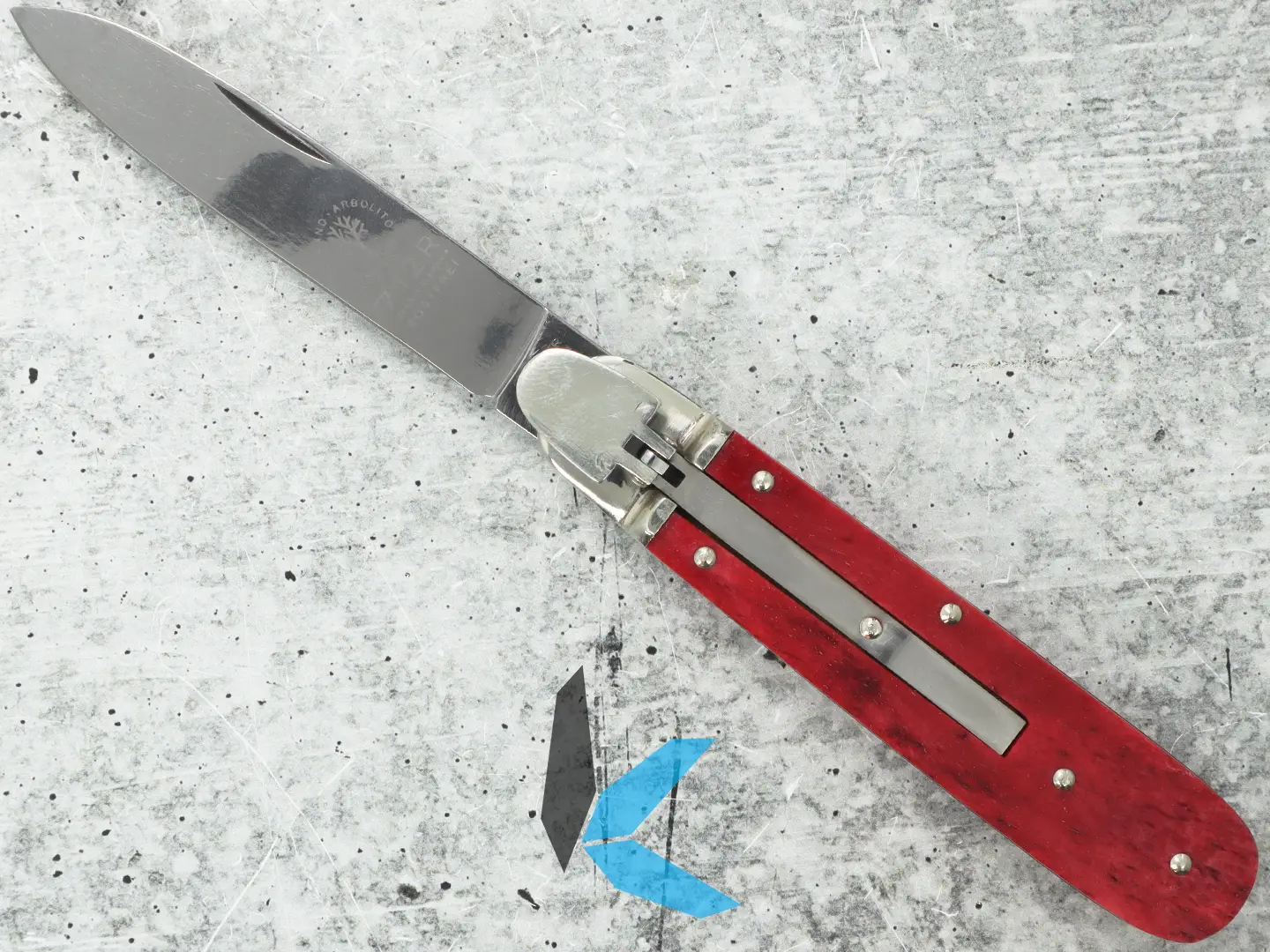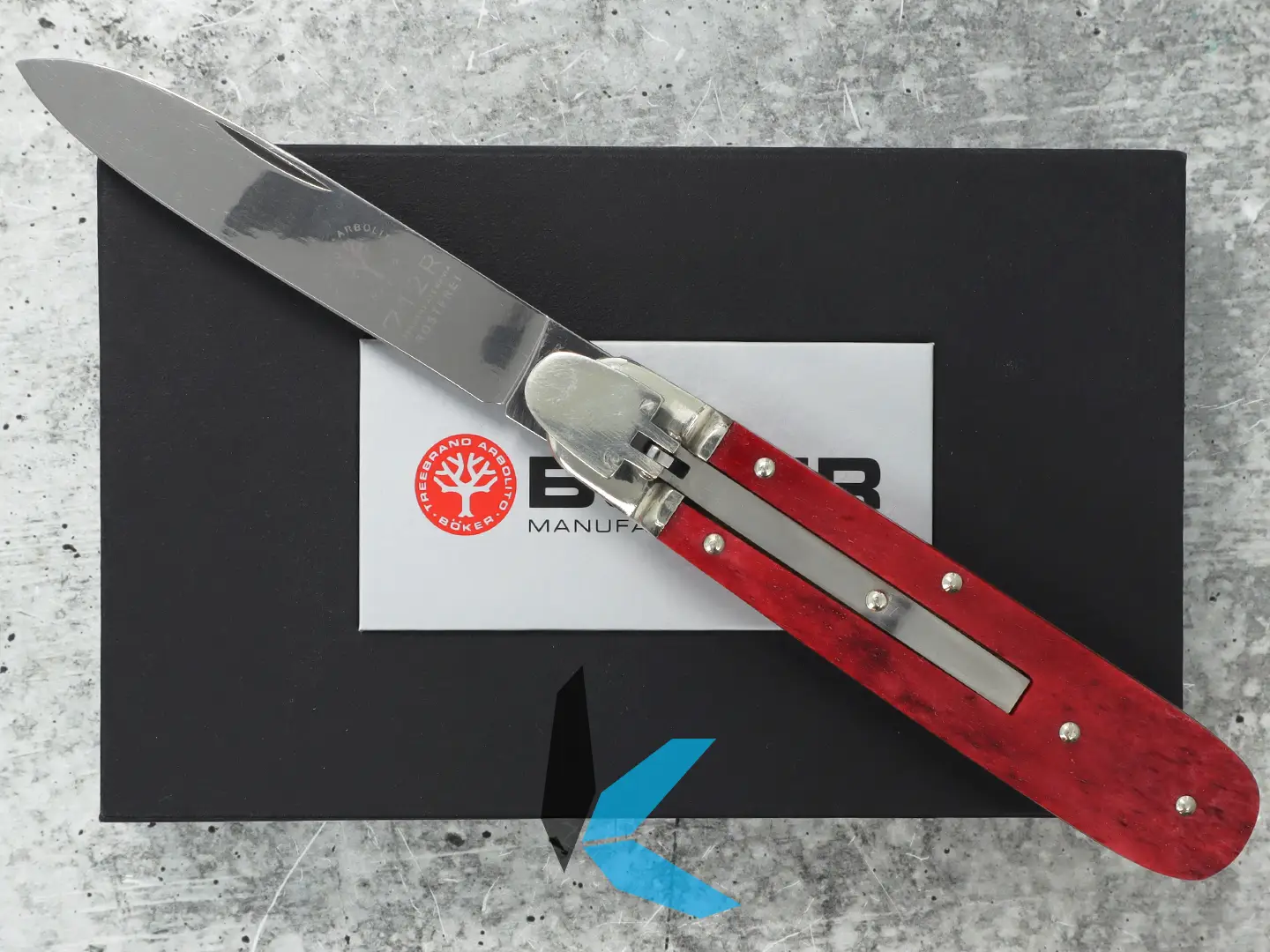 The 712R showcases genuine red bone handle scales, complemented by thick brass liners and nickel silver bolsters, offering both durability and a timeless, collectible look. The automatic action remains crisp, and the overall fit and finish reflect the meticulous standards of Boker’s earlier production era.