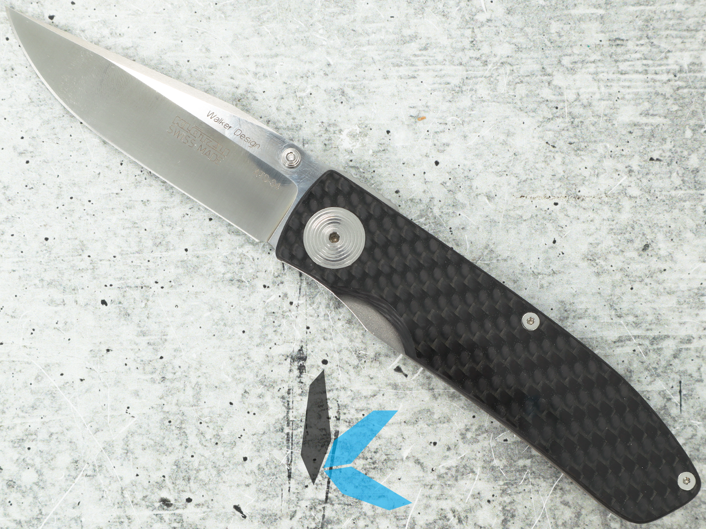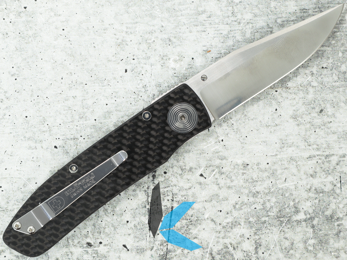 The carbon fiber handle keeps weight low while maintaining excellent strength and durability. A titanium liner lock provides secure blade lockup, and the knife’s overall lightweight construction makes it comfortable for extended daily carry. Stainless steel hardware and pocket clip add durability while keeping the design simple and functional.