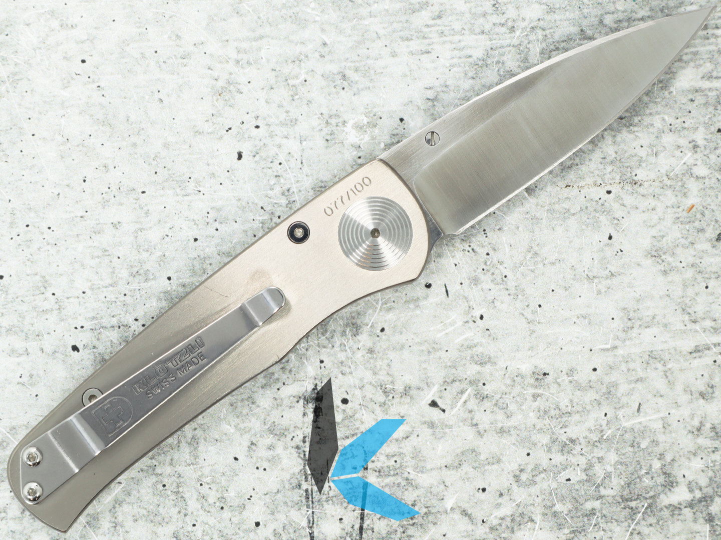 This used Klotzli AG Russell Design Limited Edition folding knife is in good condition and comes with original box.
