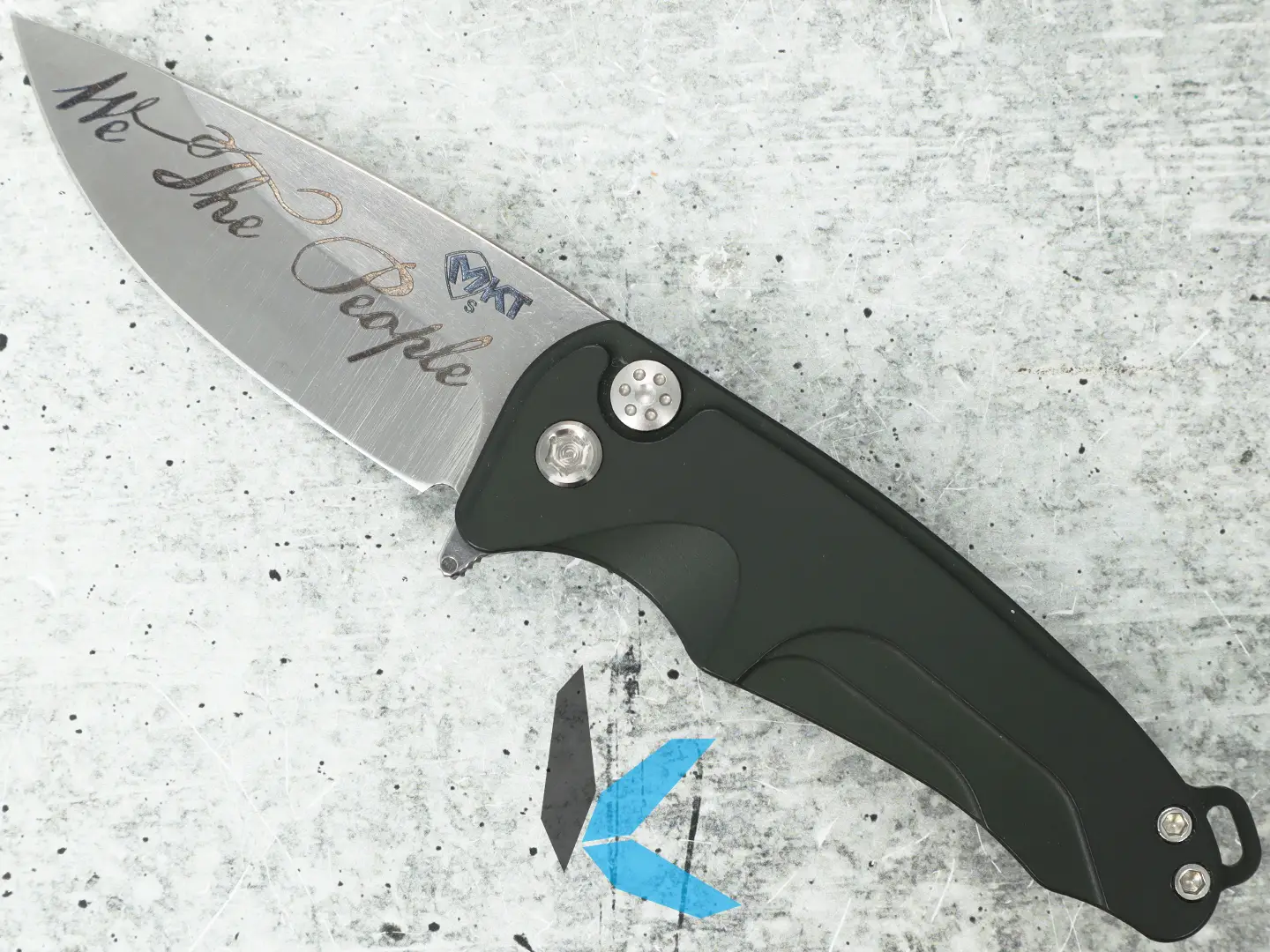 Prepare to be struck by the Medford Smooth Criminal — a refined, modern American-made folder built for smooth action, premium materials, and everyday performance. This example is in used condition, offering authentic Medford craftsmanship with added character and value. This particular model features a stonewashed blade, a green anodized aluminum handle, and a distinctive “We the People” inscription on the blade, giving it a bold, patriotic identity that sets it apart from standard configurations.