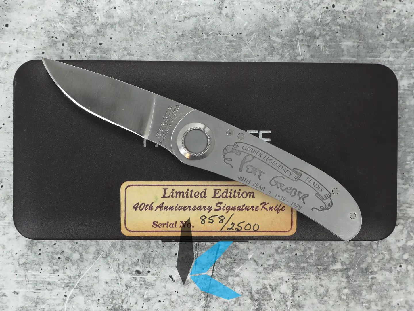 This pre-owned Gerber Paul 2P 40th Anniversary Folder is a rare collector’s item, manufactured in 1979 in Portland, Oregon. Designed by Paul Poehlmann, this knife commemorates four decades of the iconic Paul knife design and is part of a limited run of only 2,500 pieces. This one is serial number 858.