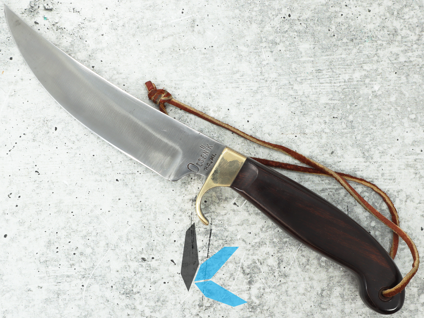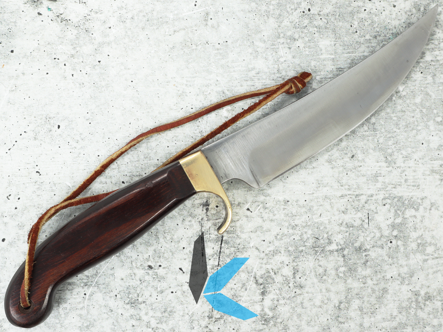 The handle features Neslo wood scales, delivering a natural look with a comfortable grip. A brass guard adds durability and helps protect your hand during use, while the thong hole allows for lanyard attachment.