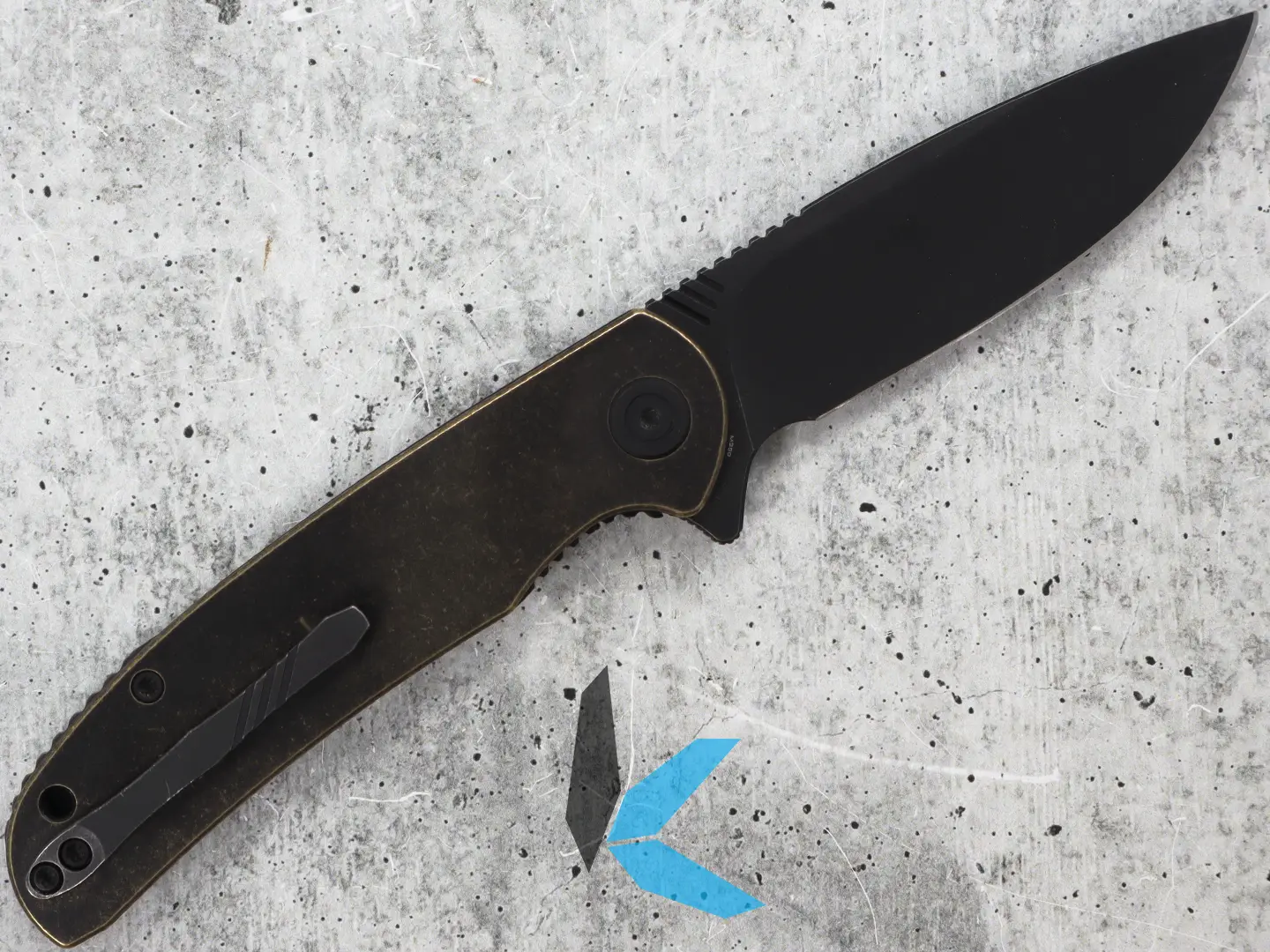 The 809E features a 3.3” Bohler M390 blade, renowned for its exceptional edge retention, corrosion resistance, and cutting performance. The hollow grind and black stonewashed finish enhance its utility and durability, making it a reliable tool for daily tasks. The handle, crafted from black stonewashed brass, provides a comfortable and secure grip, complemented by a brass backspacer for added strength.