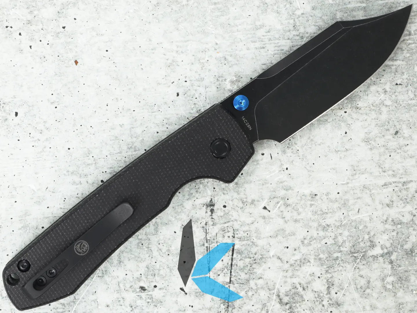 It features a 3.25″ Bowie-style blade made from Sandvik 14C28N stainless steel, offering strong corrosion resistance, good toughness, and easy sharpening. The flat grind and black stonewashed finish provide a rugged look while handling everyday cutting tasks with ease.
